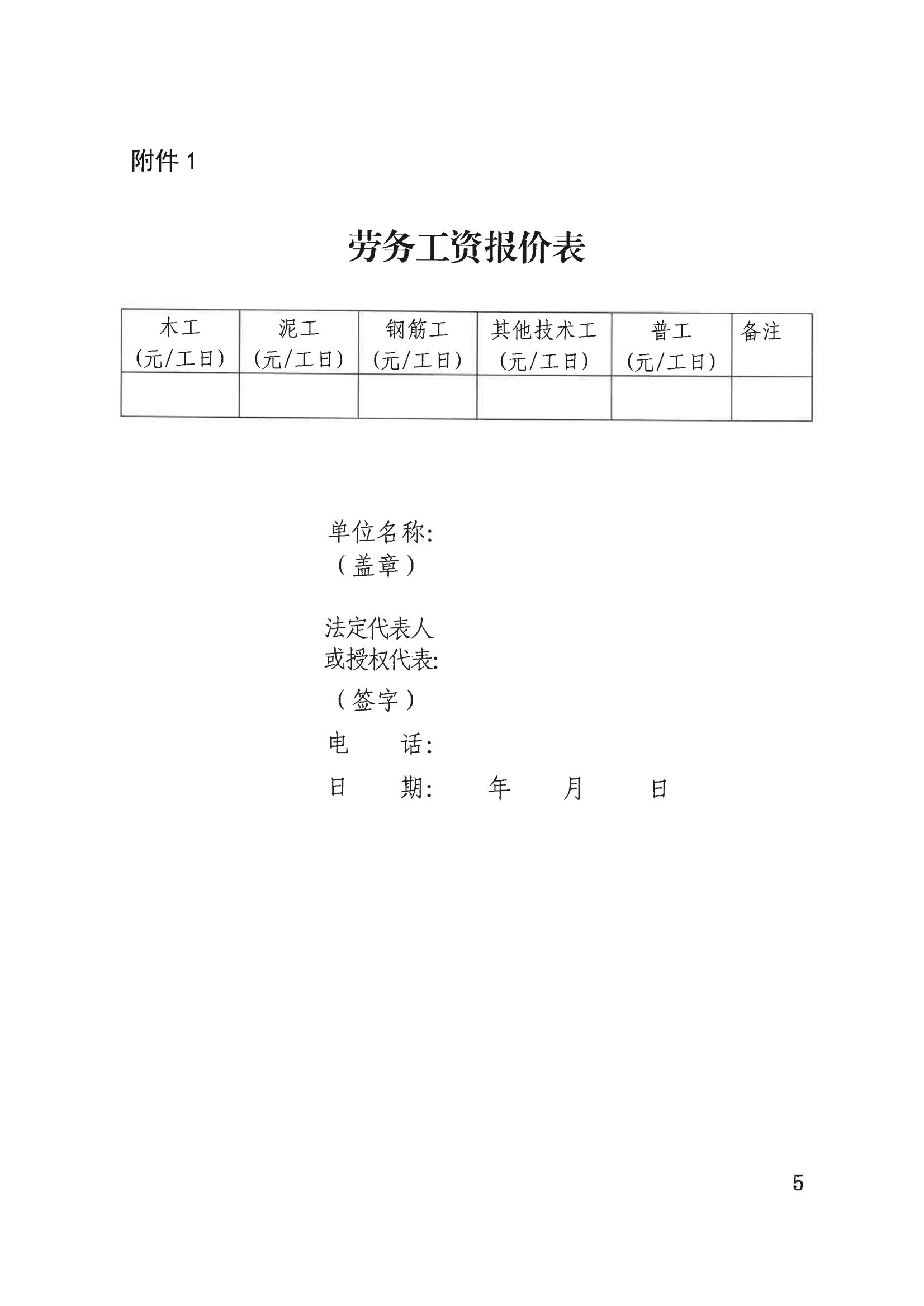附件:1.劳务工资报价表
